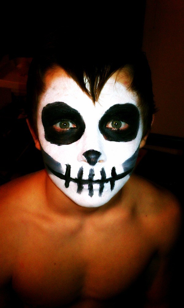 They had a small kitchenette at the far end converted into what looked like a real granite bar. Complete with a stalwart bartender in a Santa Muerte mask and bowtie, standing with his hands behind his back. The smiling skull face stared out with empty black eyes in a midst a red tribal pattern. Very scary.